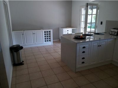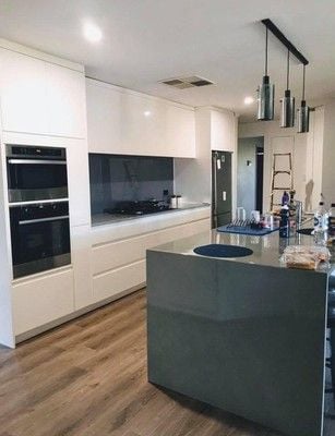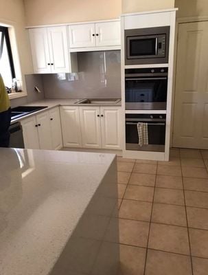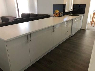 High Gloss 2 Pac finished doors. Bonethane Polymer Splashbacks.