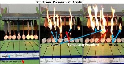 You will note Bonethane self extinguishes whilst the Acrylic Splashbacks burn with fury and high flame velocity.
